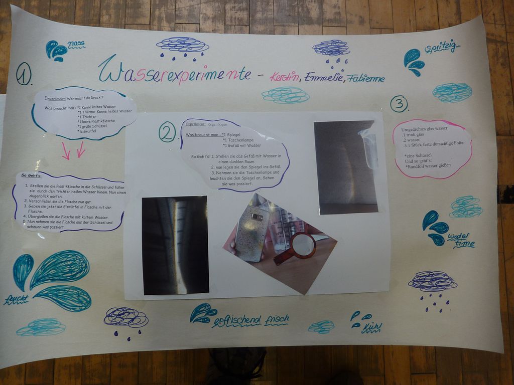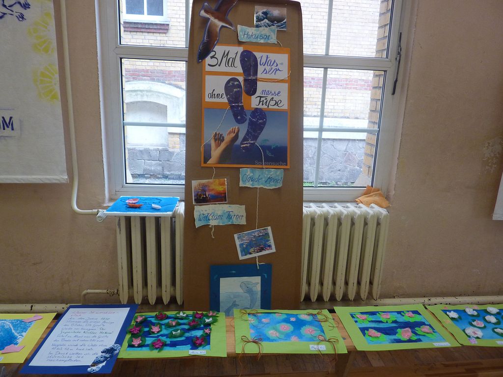In der letzten Schulwoche des Schuljahres 2016/2017 haben sich alle Klassen (außer Praktikum) in einer Projektwoche mit dem Thema "Wasser" beschäftigt. Die Exponate dazu wurden am letzten Schultag in der alten Turnhalle ausgestellt.