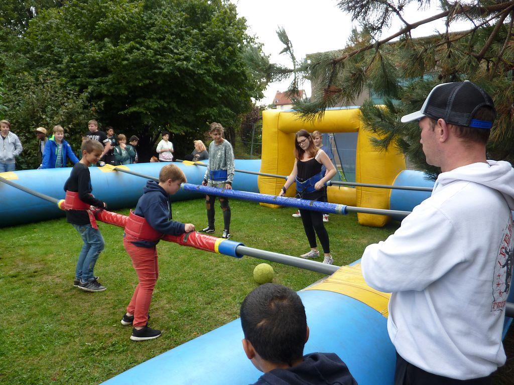 Es gab eine Mittagsversorgung durch die Johanniter sowie Kaffee und viele verschiedene Kuchen. Ein großes Dankeschön fürs Sponsoring an das Backhaus Hennig in Groitzsch. Auch beim Kinderschminken und Luftballonmodellieren gab es viel Spaß. Die Mega-Kicker-Turniere auf der Wiese hatten auch viele Zuschauer. Die Aktion „115 Luftballons steigen lassen“ brachte auch viel Freude.